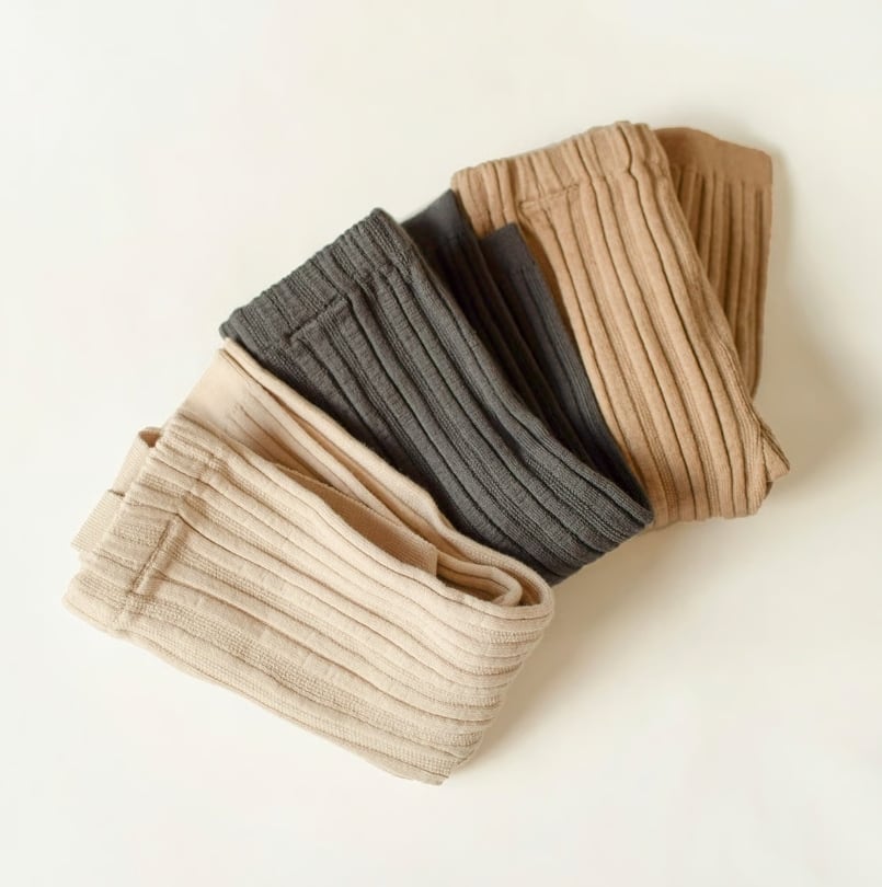 柔らかい肌触りで暖かく包み込む、編み立てニットのレギンスです。