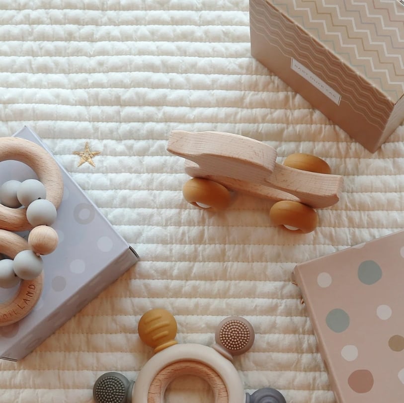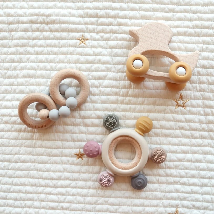 お部屋に散らばっていても可愛く見えちゃう優しい色合いの木製おもちゃ。