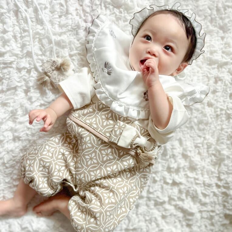 お宮参りやお食い始め、100日祝いなどにおすすめの、着物風2wayドレスです。