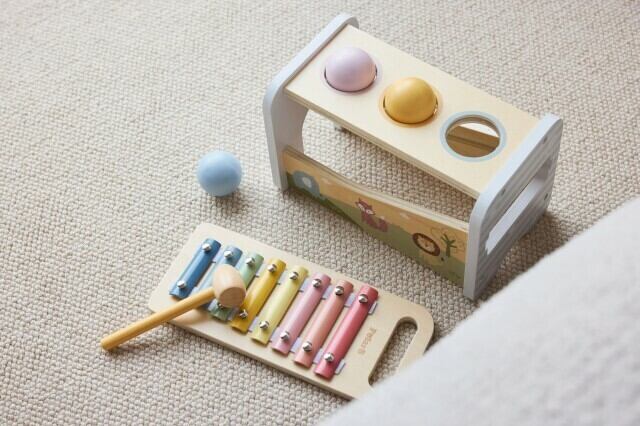 カラフルでかわいいハンマートイハンマー遊びと楽器遊びが楽しめるハンマーシロフォン。