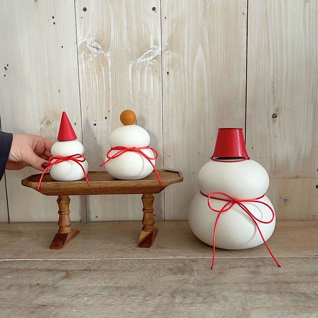 真っ白な半磁器(ストーンウェア)で作られた雪だるまのオブジェです。