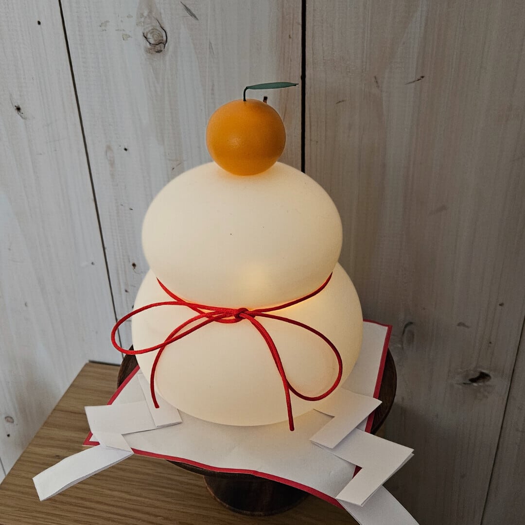 鏡餅 オブジェとしても使える半磁器のLEDライト 【ビッグサイズ】 電池式 お正月飾り 正月 雪だるま クリスマス サンタ帽子 shesay 108365
