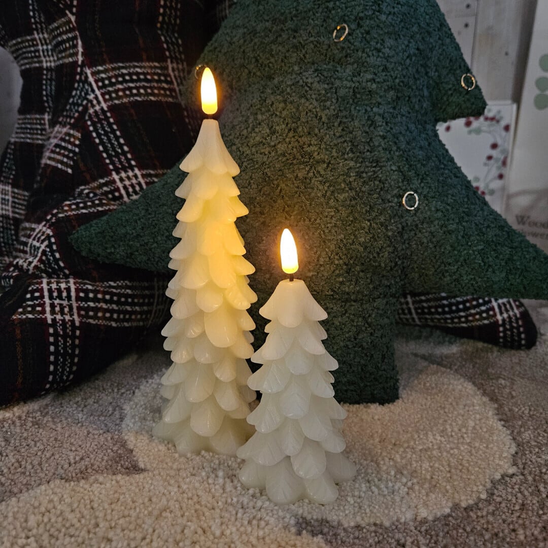 本物のワックスで作られたモミの木の形をしたLEDキャンドル。