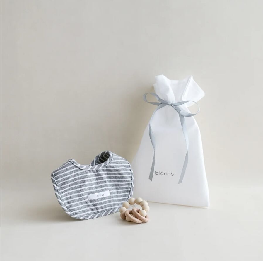 blanco | gift bib& rattle ベビースタイとラトル ギフト袋入 ブランコ