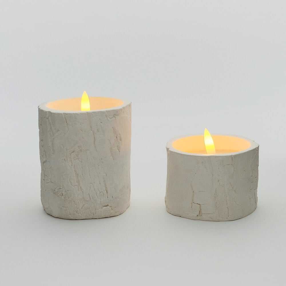 まるで本物の切り株のような質感を持つナチュラルなLEDキャンドルライト。