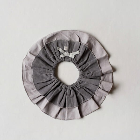 首回りはぐーんと伸びるゴムで、すぽっと簡単に着脱できます。