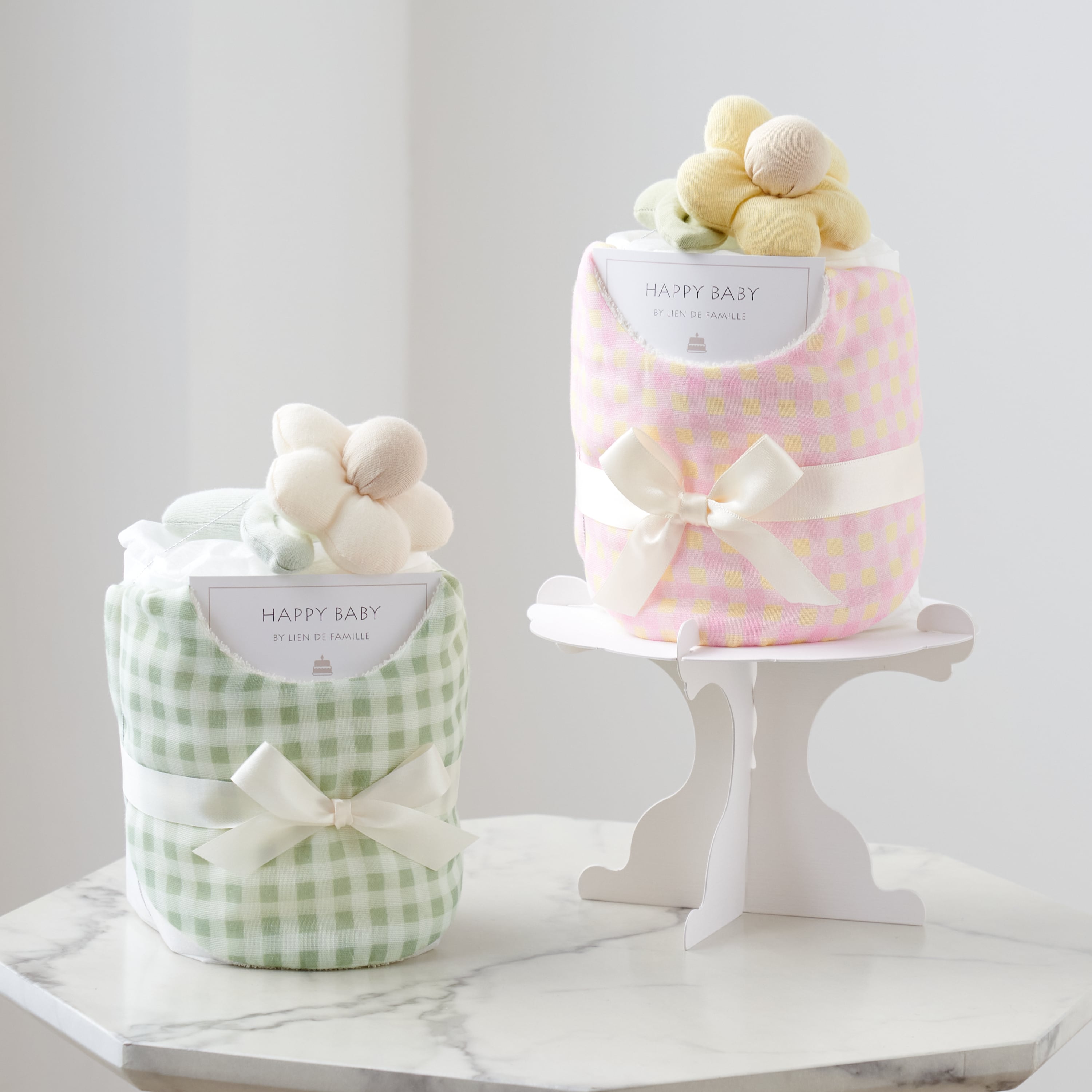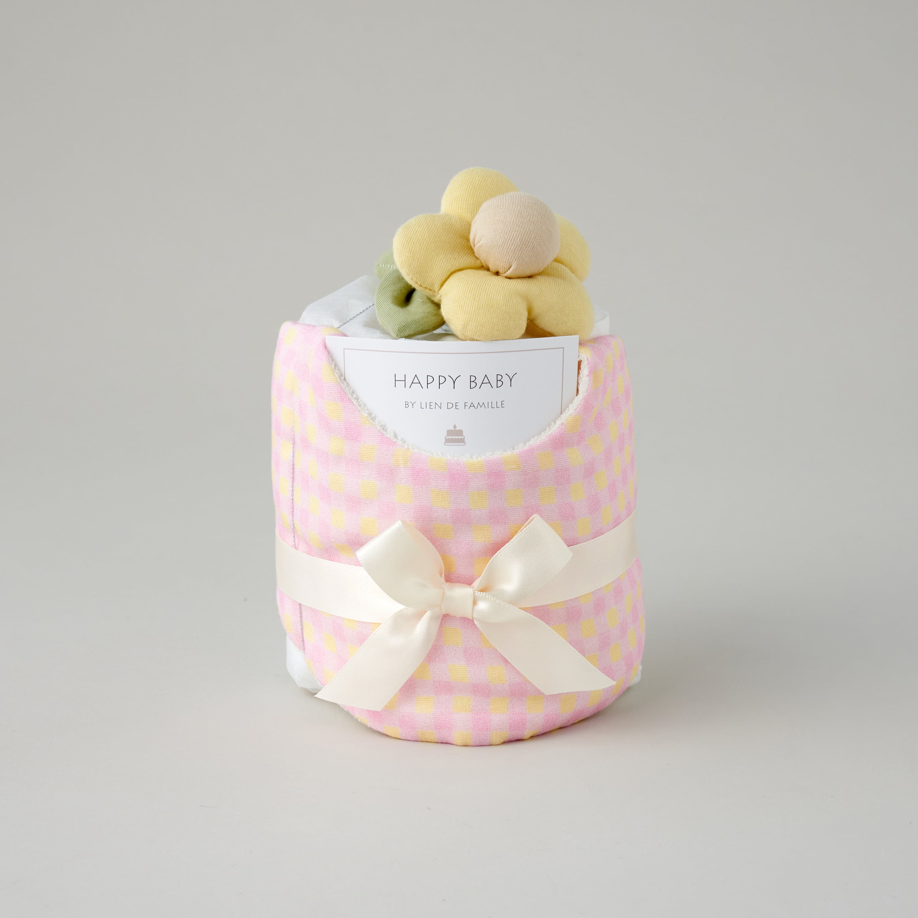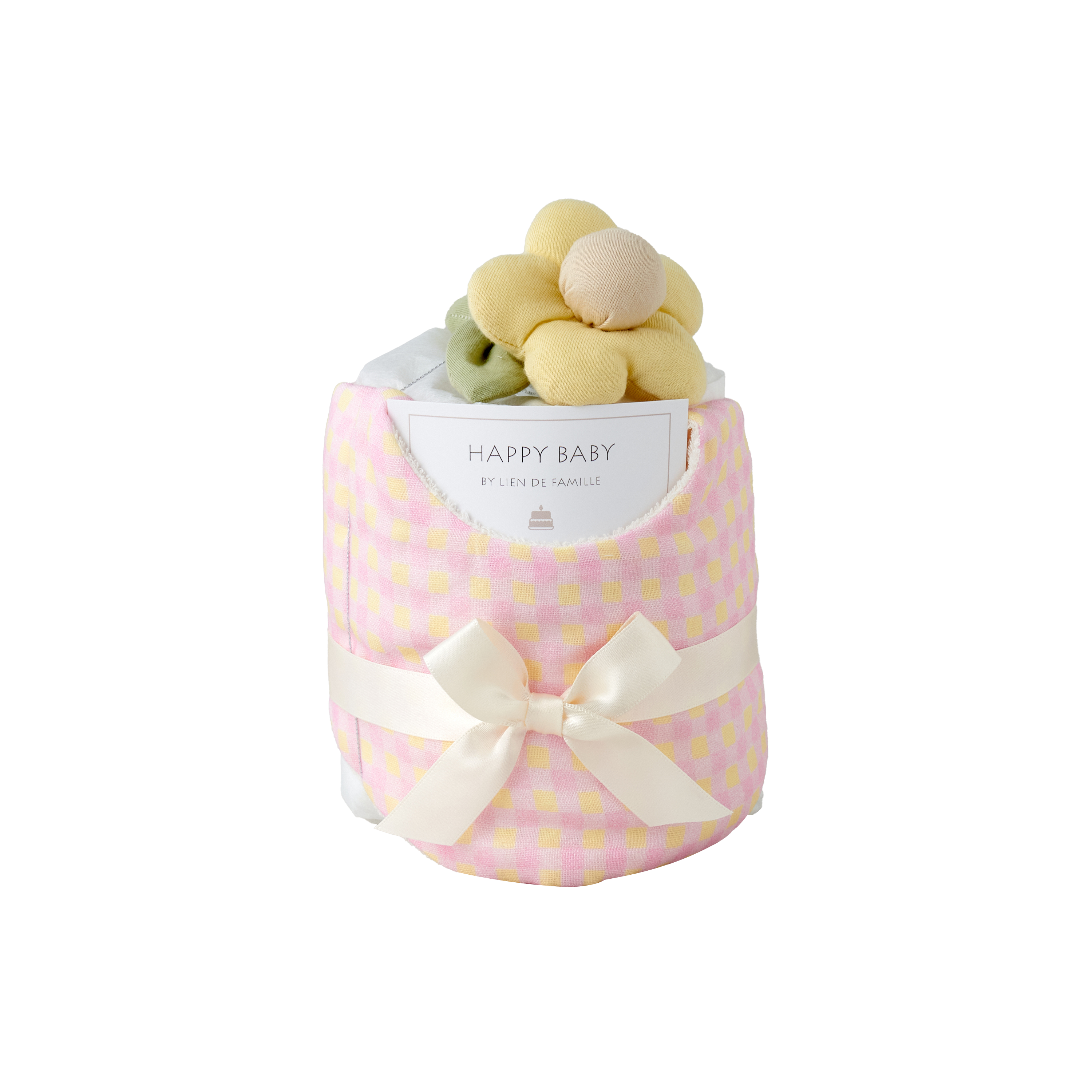 Lien de famille | ギンガムチェックスタイとお花のラトルの ベビーケーキ 日本製 ベビーギフト 出産祝い