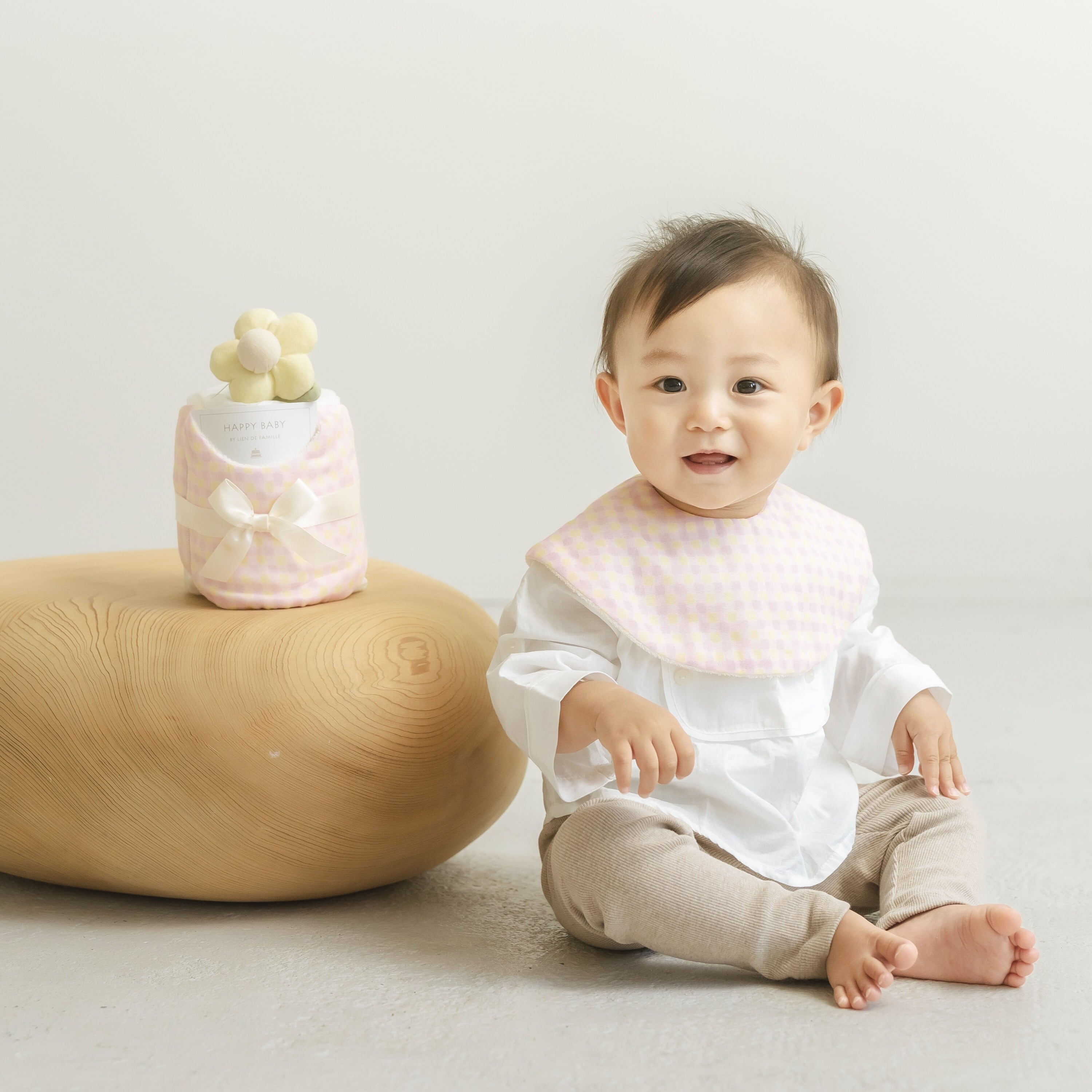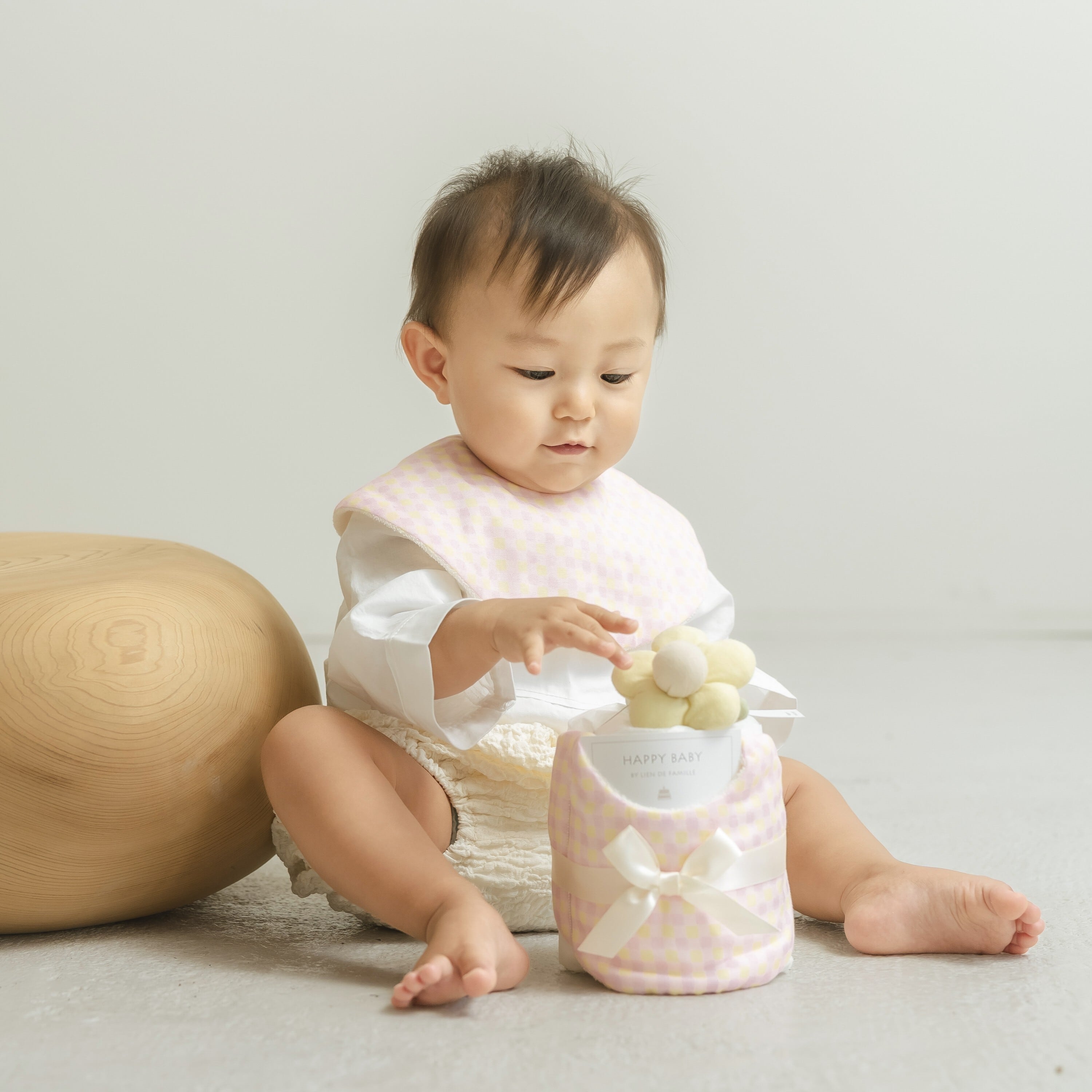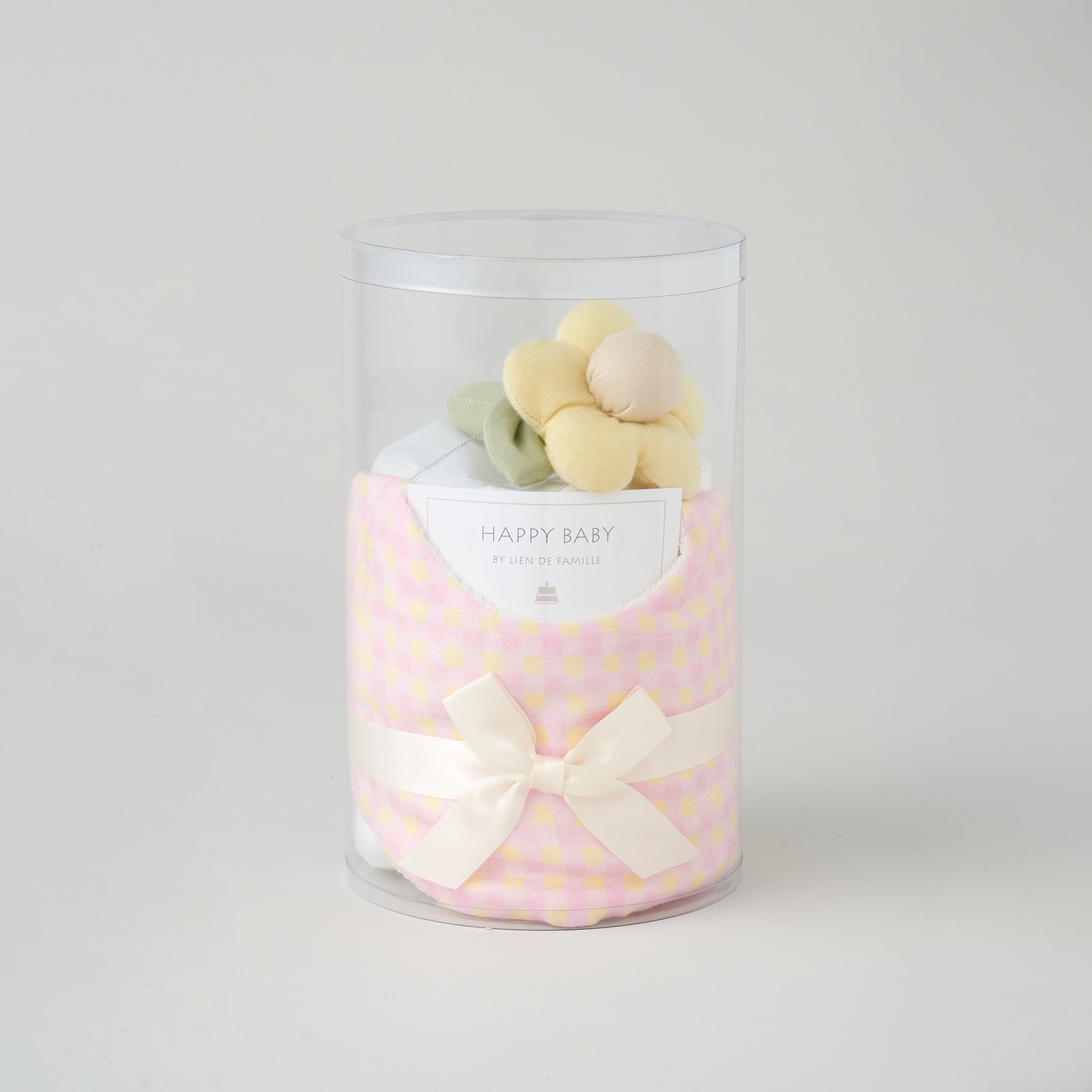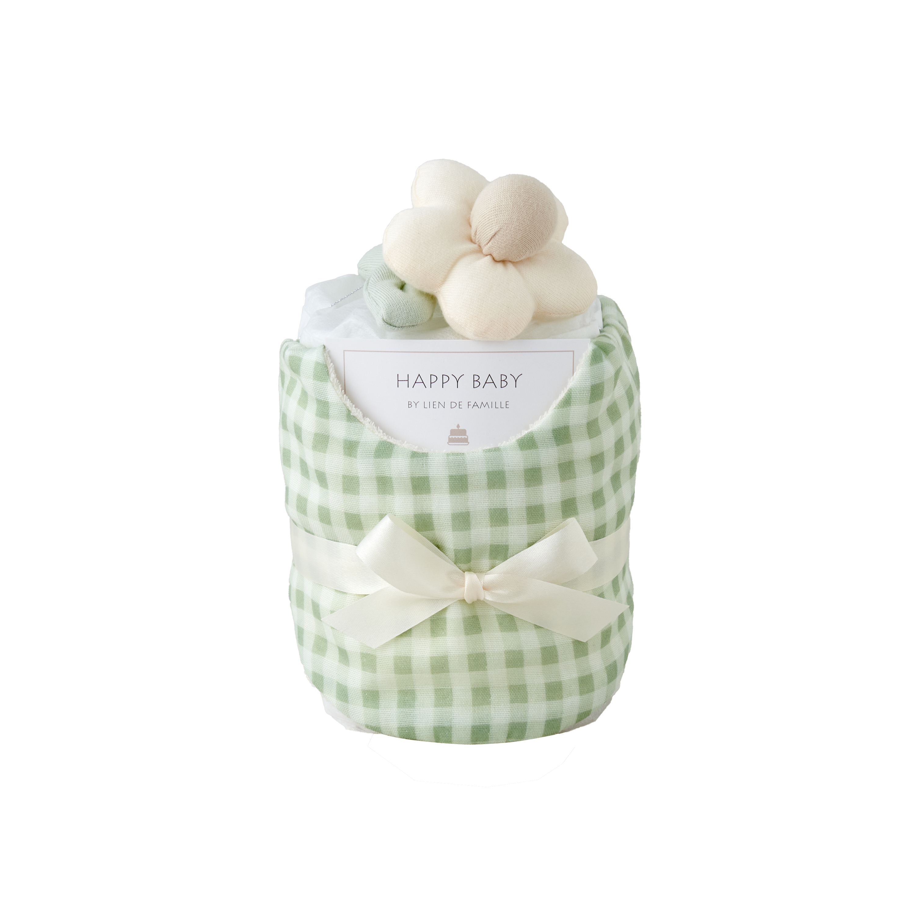 Lien de famille | ギンガムチェックスタイとお花のラトルの ベビーケーキ 日本製 ベビーギフト 出産祝い
