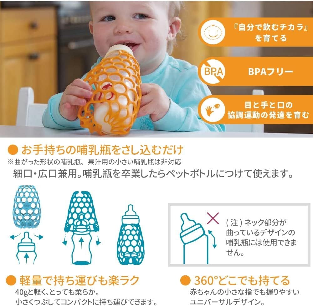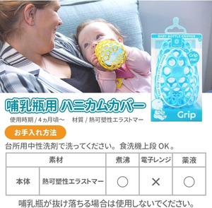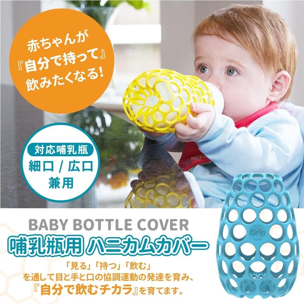 赤ちゃんが自分で持って飲みたくなる、哺乳瓶用ハニカムカバー