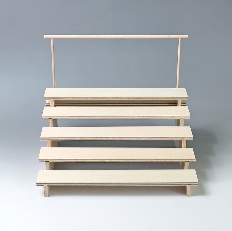 木製容器(朴、漆塗り)、垂幕(北川織物製)、飾り段、もうせん