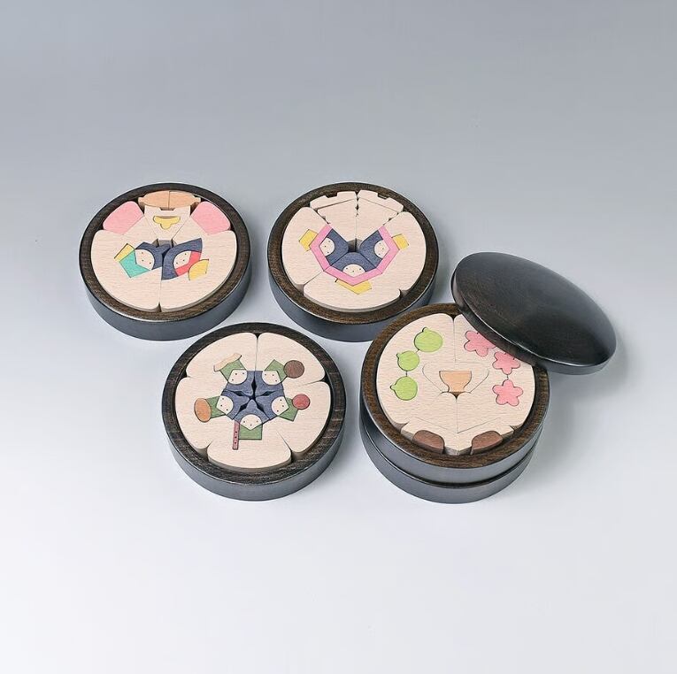 天然木から生まれる小黒三郎の組み木は、切り抜きから染色まで、すべての工程を職人の手作業で行っています。また、節句人形に用いる専用の容器も、日本各地で活躍する職人の手による伝統工芸品を使用しています。遊プランは、小黒三郎の組み木を後世まで伝えることを目的に、これからも高いクオリティで小黒三郎の組み木を生み出してゆきます。