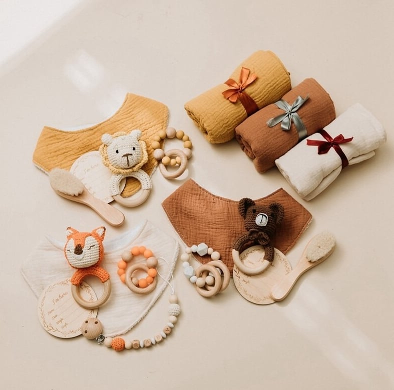 赤ちゃんのファーストトイやブランケット等バスグッズのセットです。