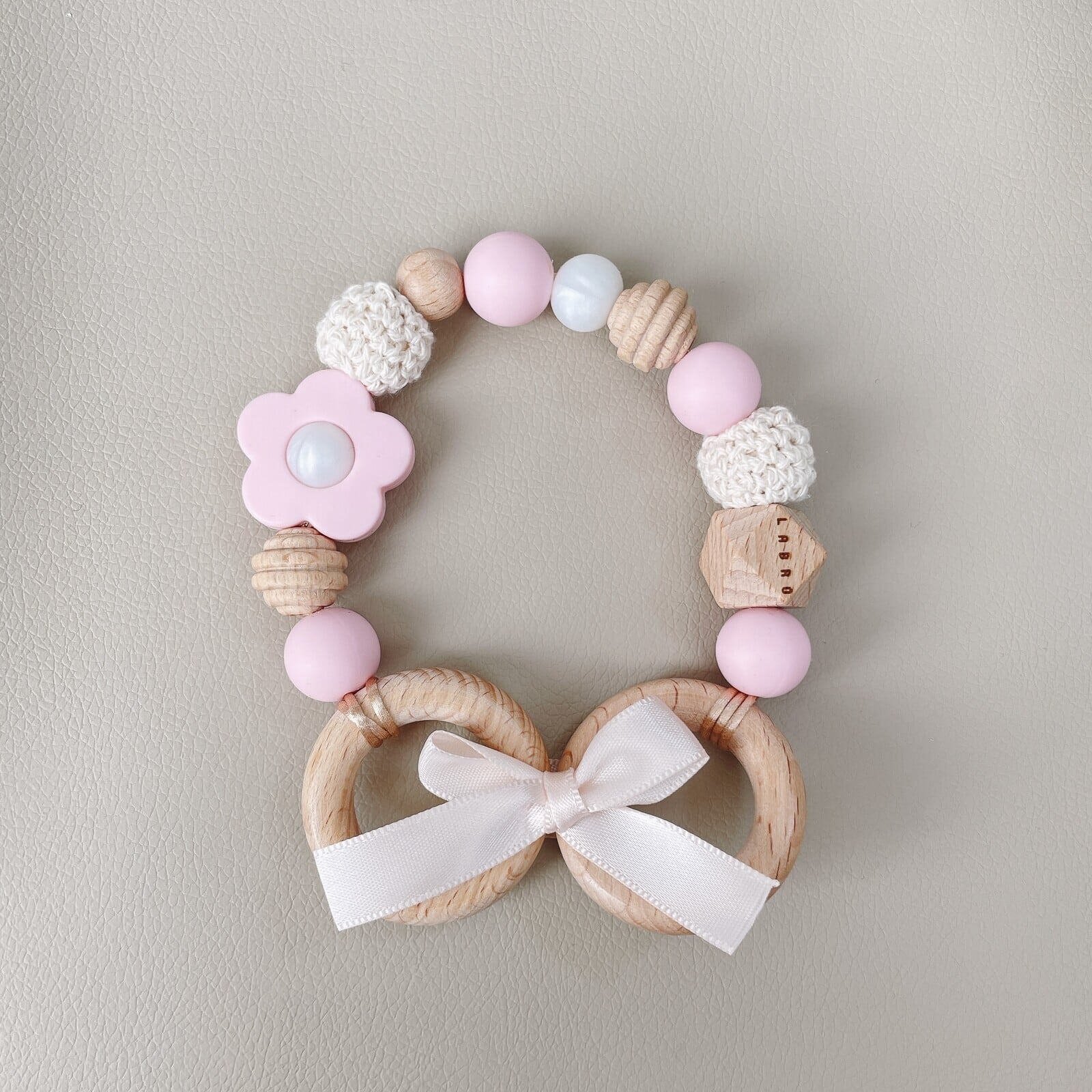 ビーズ商品は赤ちゃんが口に入れても安心な素材でお作りしています。
