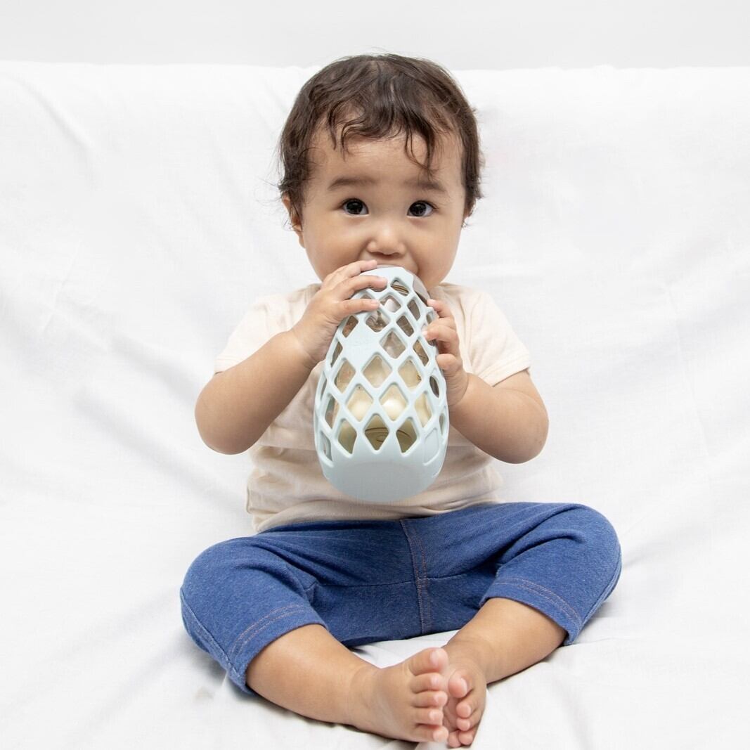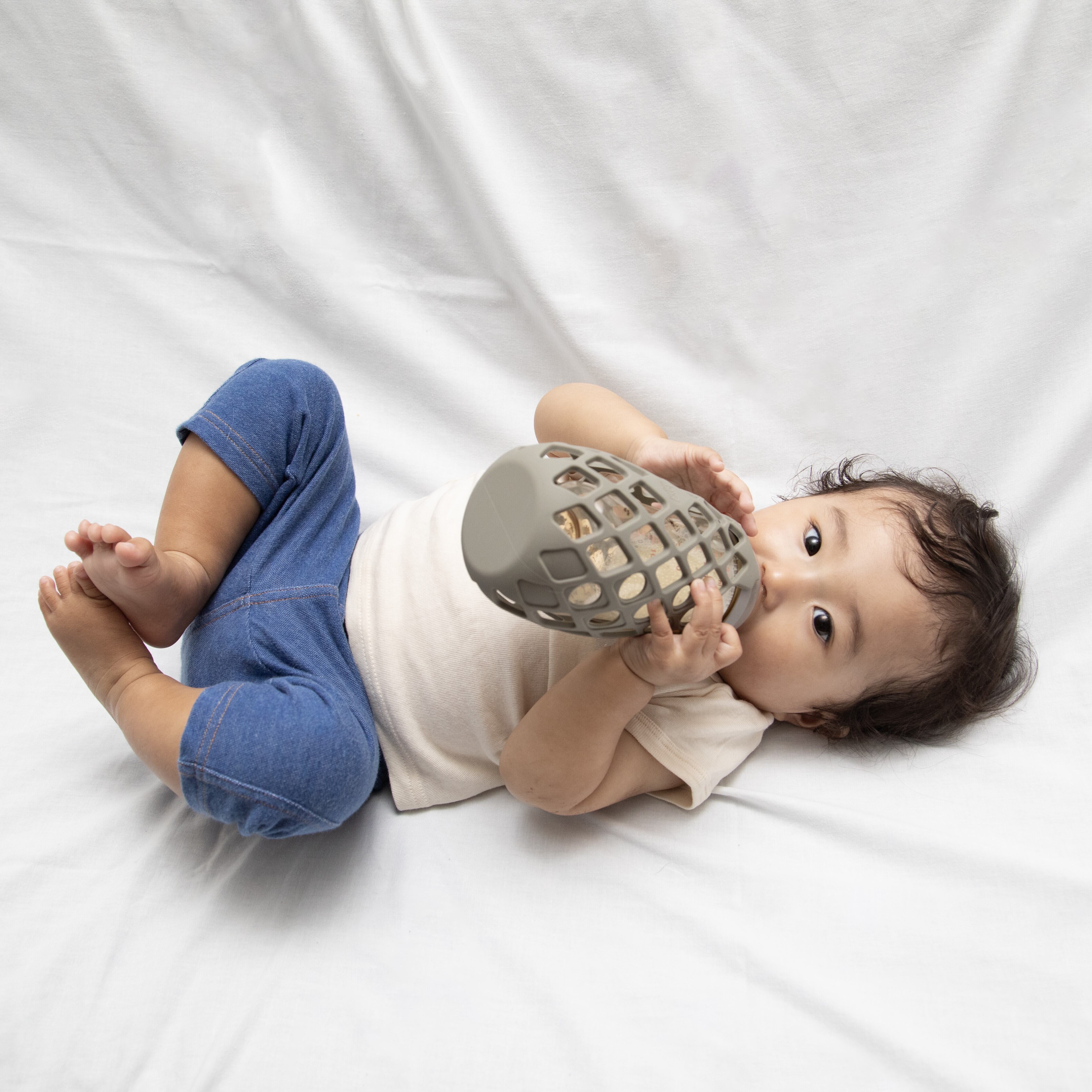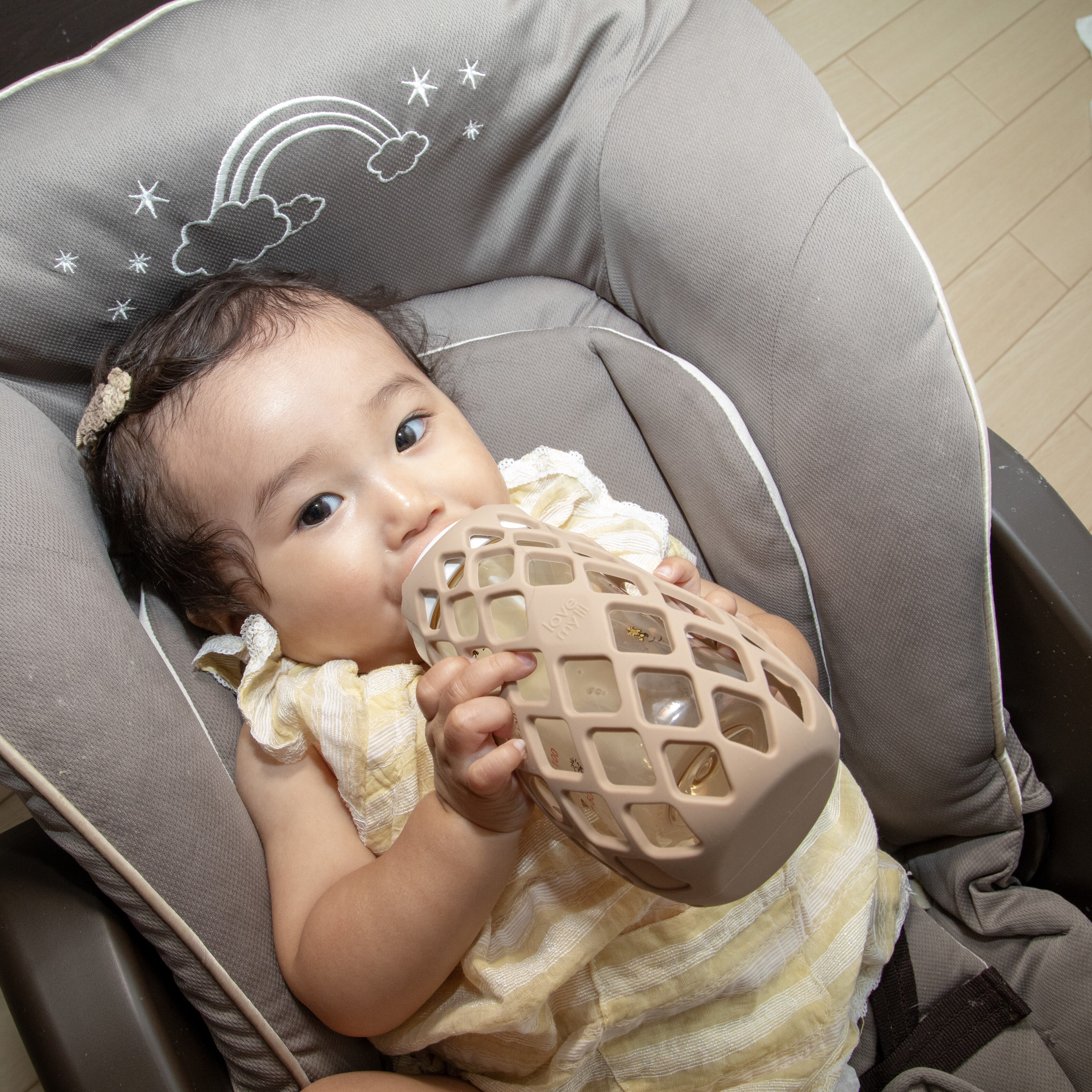 小さな手でもしっかりつかめる哺乳瓶ホルダー。