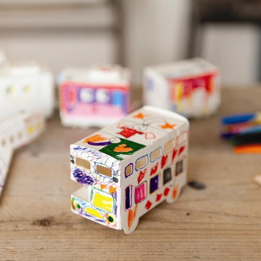 2階建てバス・電車・ダンプカー・パトカー・ヒコーキの5種類が作れます。
