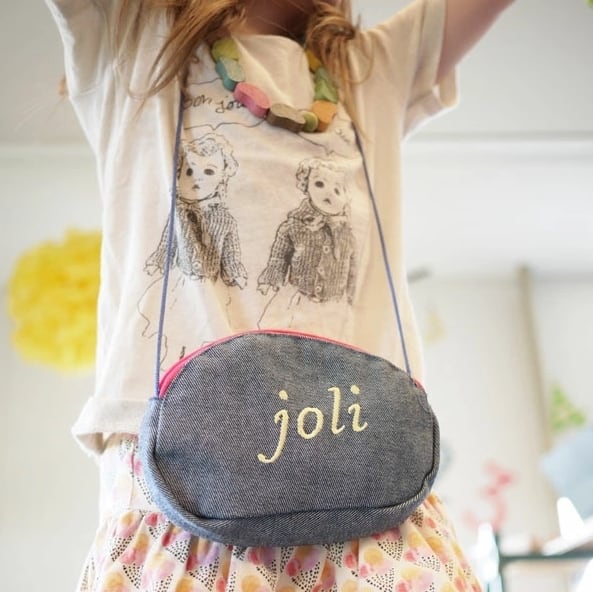 ネックレスとおそろいのブレスレットと、おでかけの時にぴったりなデニムのポーチもセット。おしゃれが大好きな小さなファッショニスタたちに♡