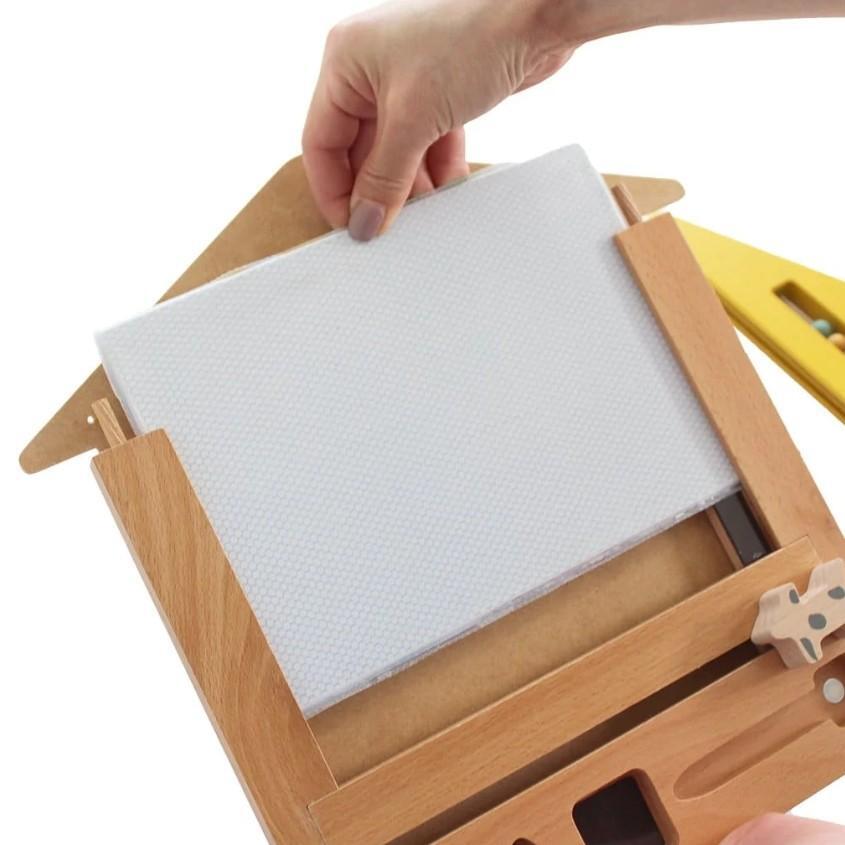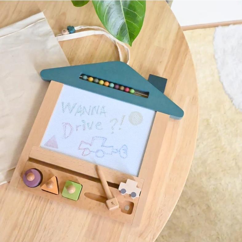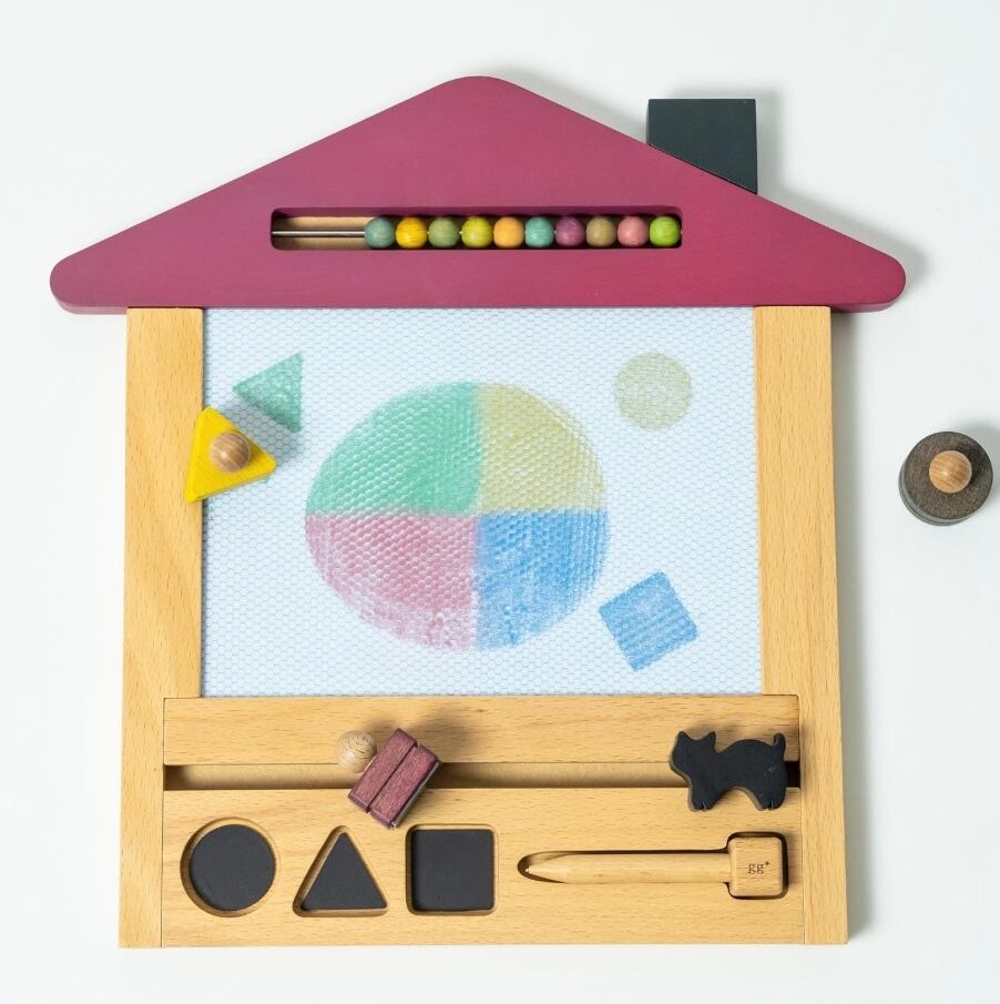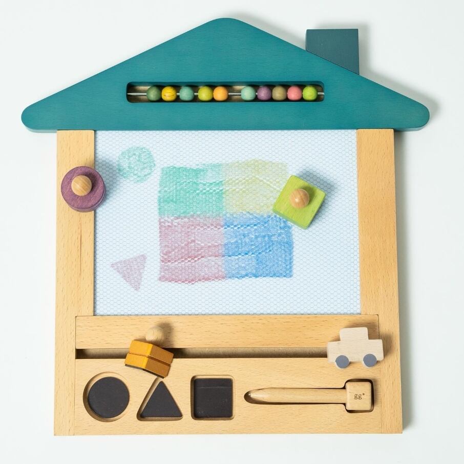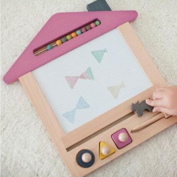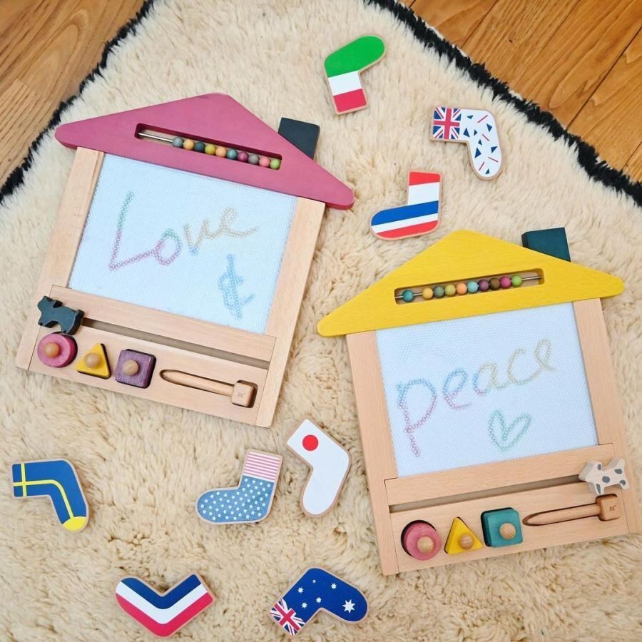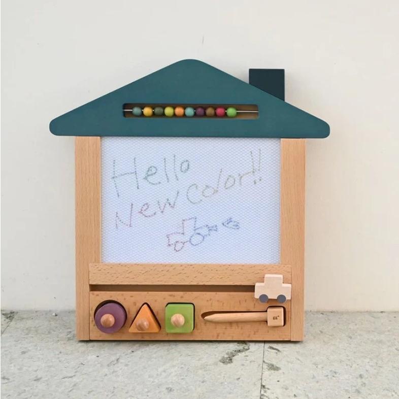 お家のカタチをした木のお絵かきボードです。