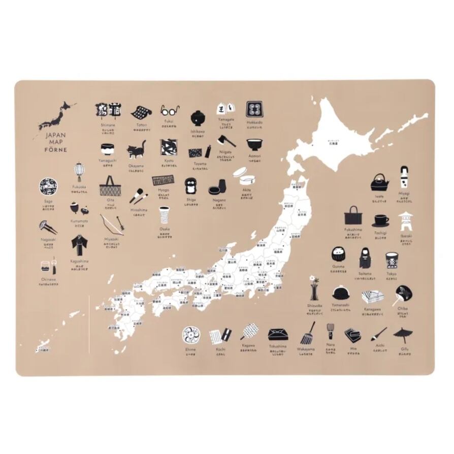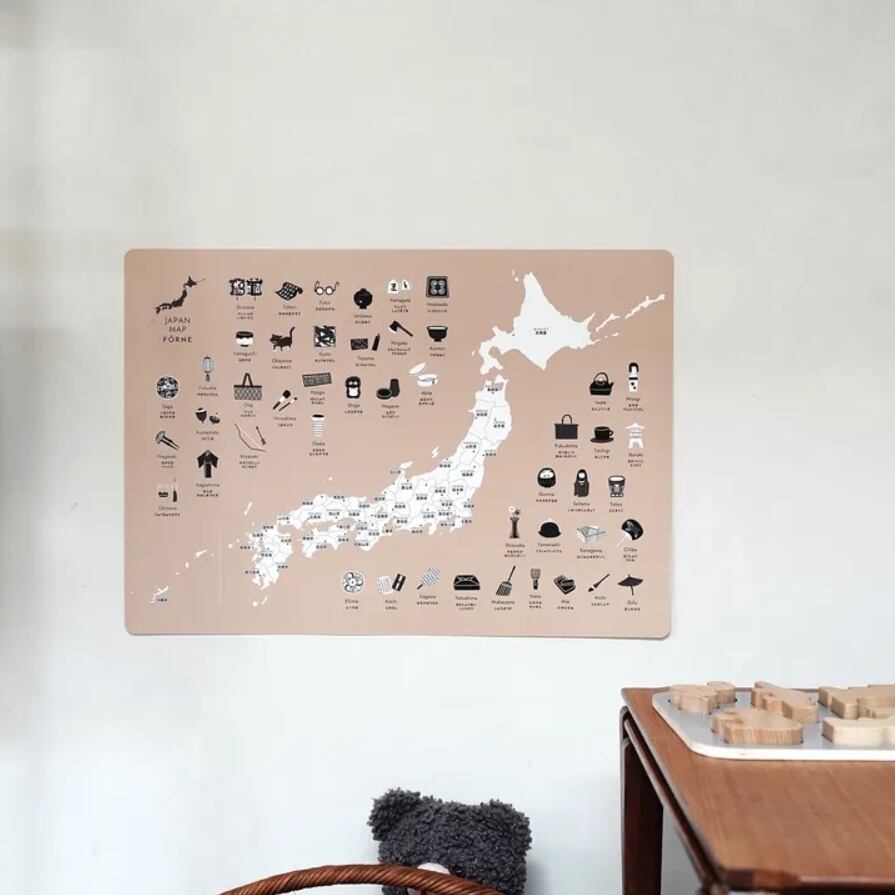 FÖRNE 日本地図ポスター B3サイズ お風呂の壁に貼れる耐水合成紙 ベージュ FORNE