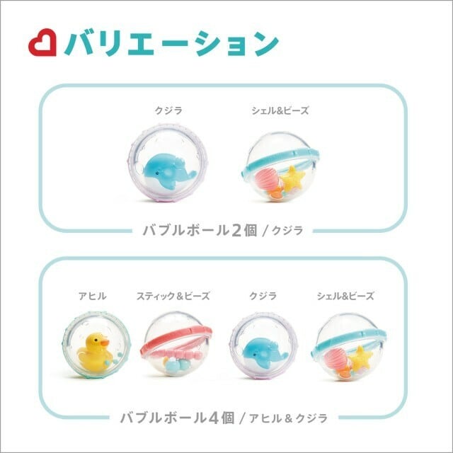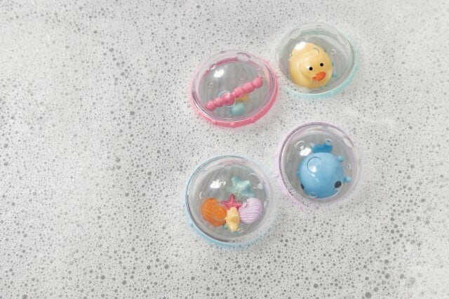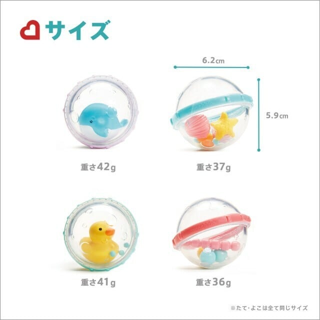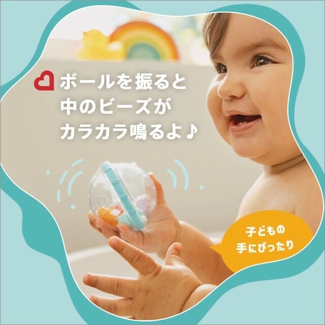 ぷかぷか浮かべたり、振ってカラカラ音を鳴らして遊べます。