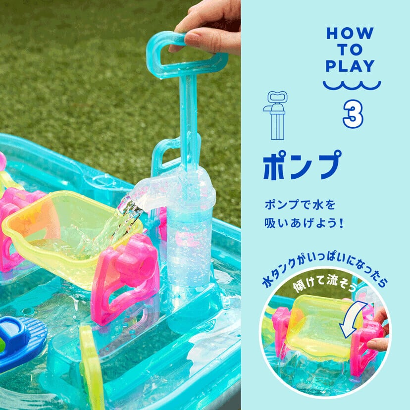 ポンプで水をくみ上げたり、水のちからで水車タワーを回転させたり、