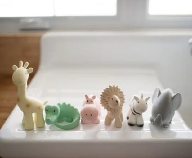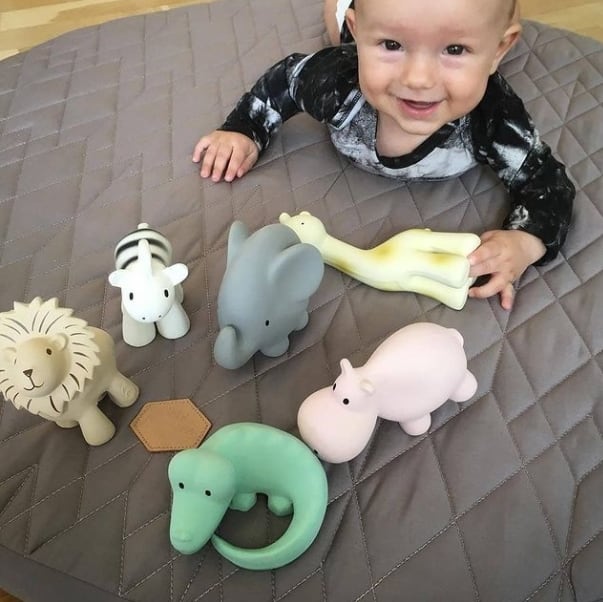 Our giraffe baby rattle is a handmade, sustainable organic rubber baby toy and is 100% plastic free. The giraffe baby toy is also designed to be easily gripped by tiny hands.