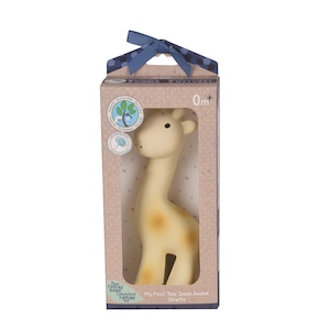 Giraffe rubber toy from My First Tikiri Safari Collection. Tikiri's giraffe baby toy is ideal for keeping your baby entertained for bath time. The baby rattle inside the giraffe toy gives a soft sound and is great for everyday play and teething.