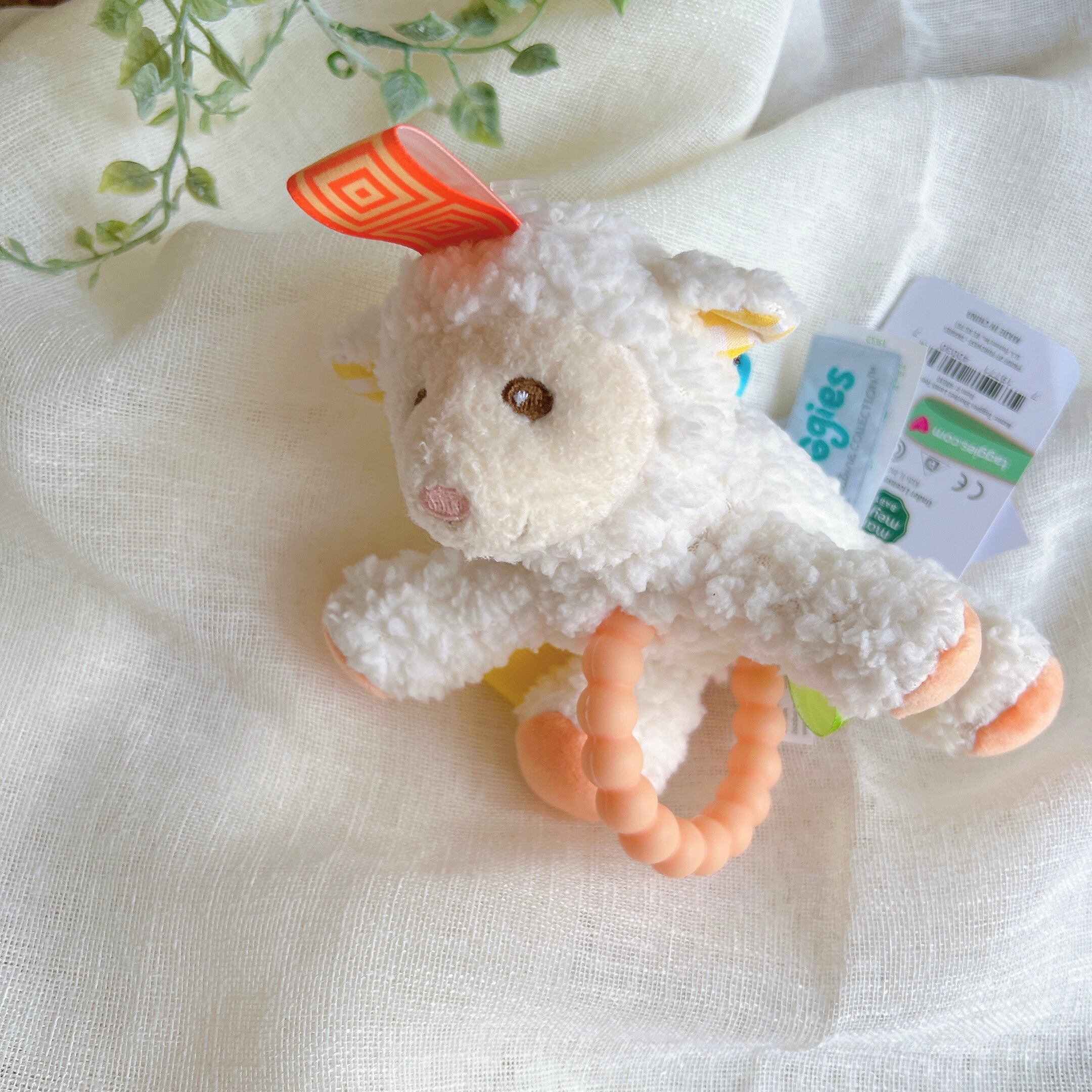 たくさんのタグが付いた「タギーズシリーズ」より登場したラム(ひつじ)のラトルです。