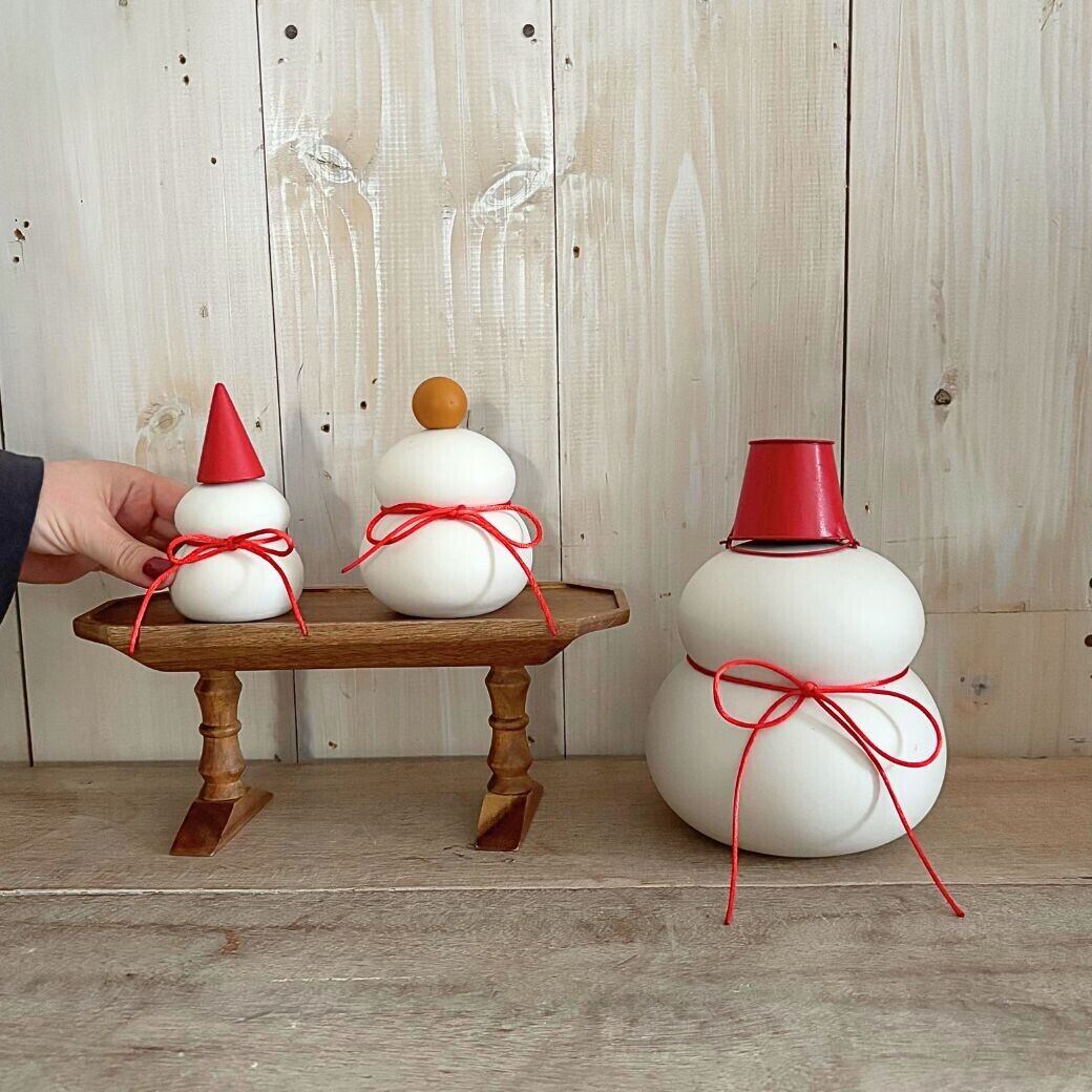 真っ白な半磁器(ストーンウェア)を使った雪だるまのオブジェです。