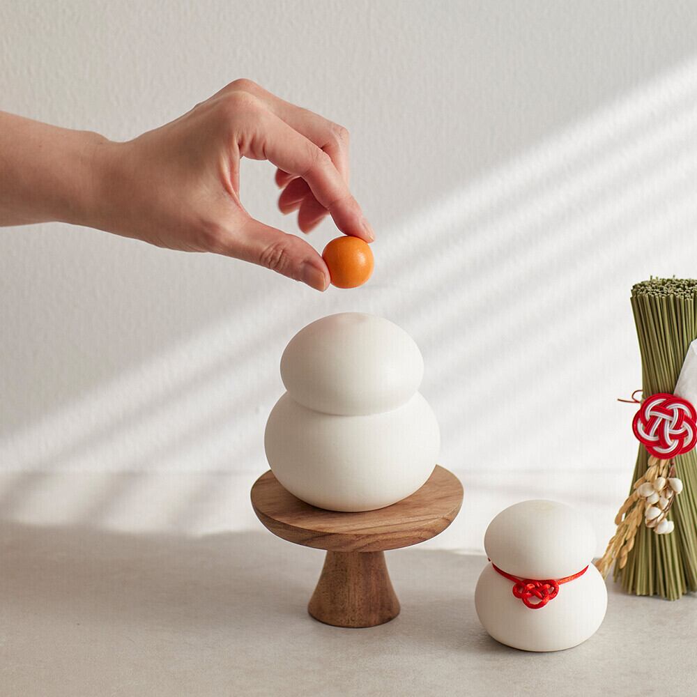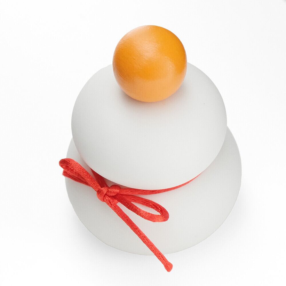 付属で飾り紐、ウッドでできた雪だるまの帽子、鏡餅の橙がセットされるので、お好みの飾り方をお楽しみください。